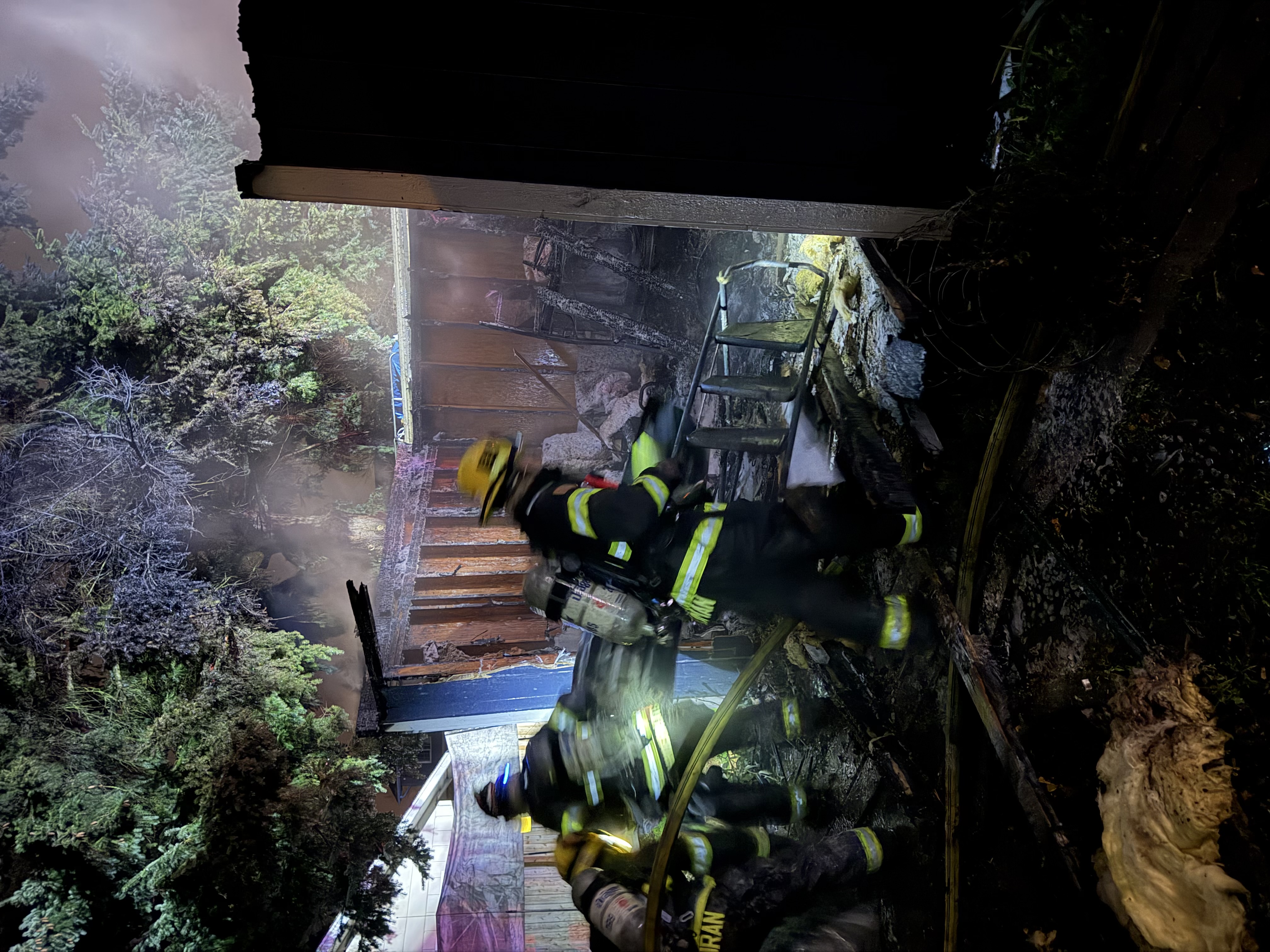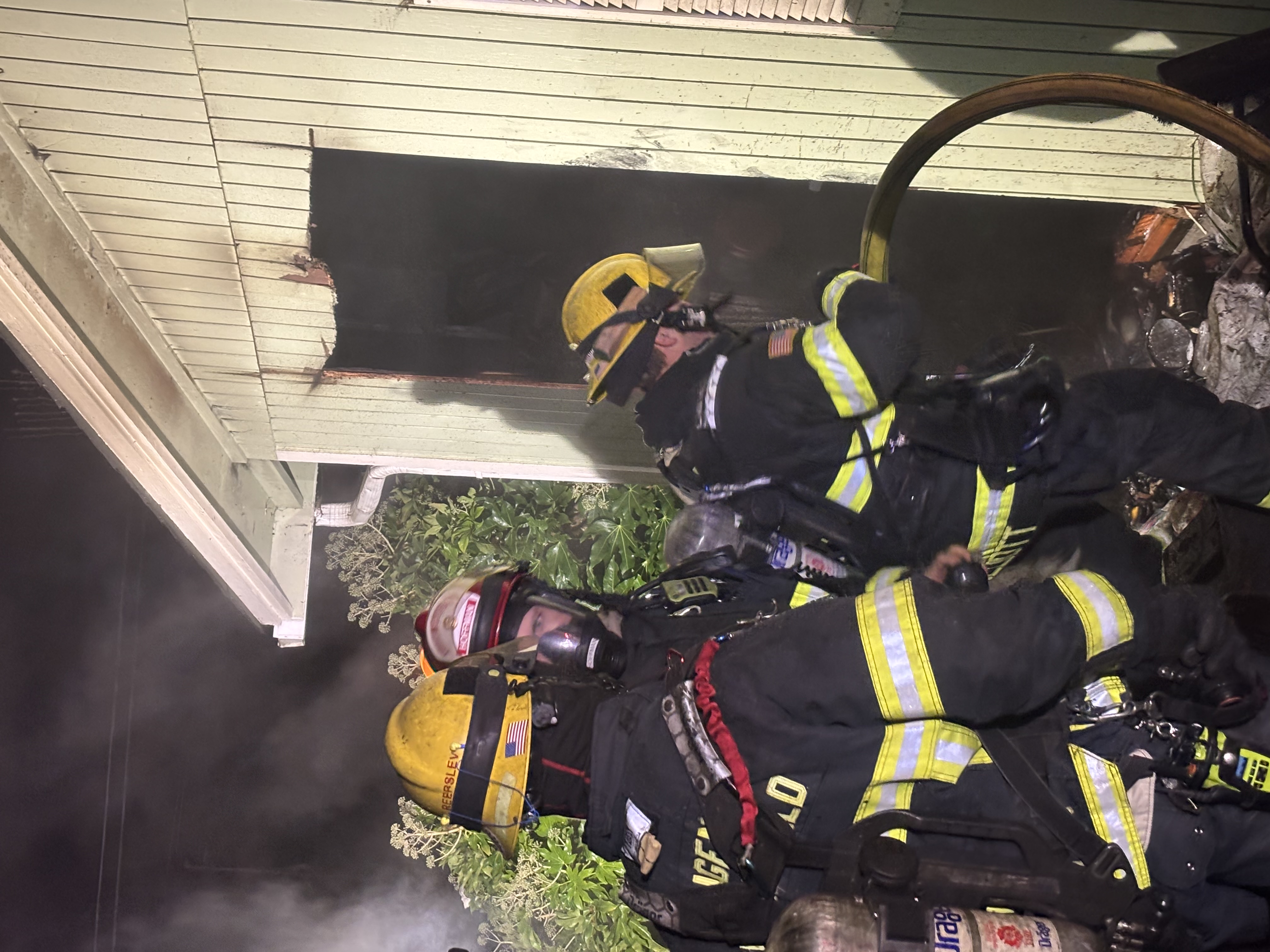 Engine 5 from the Gateway station arrived at 0359 and reported a working fire in the garage. The crew deployed a hose line for fire attack and search operations in the garage assisted by Engine 4.