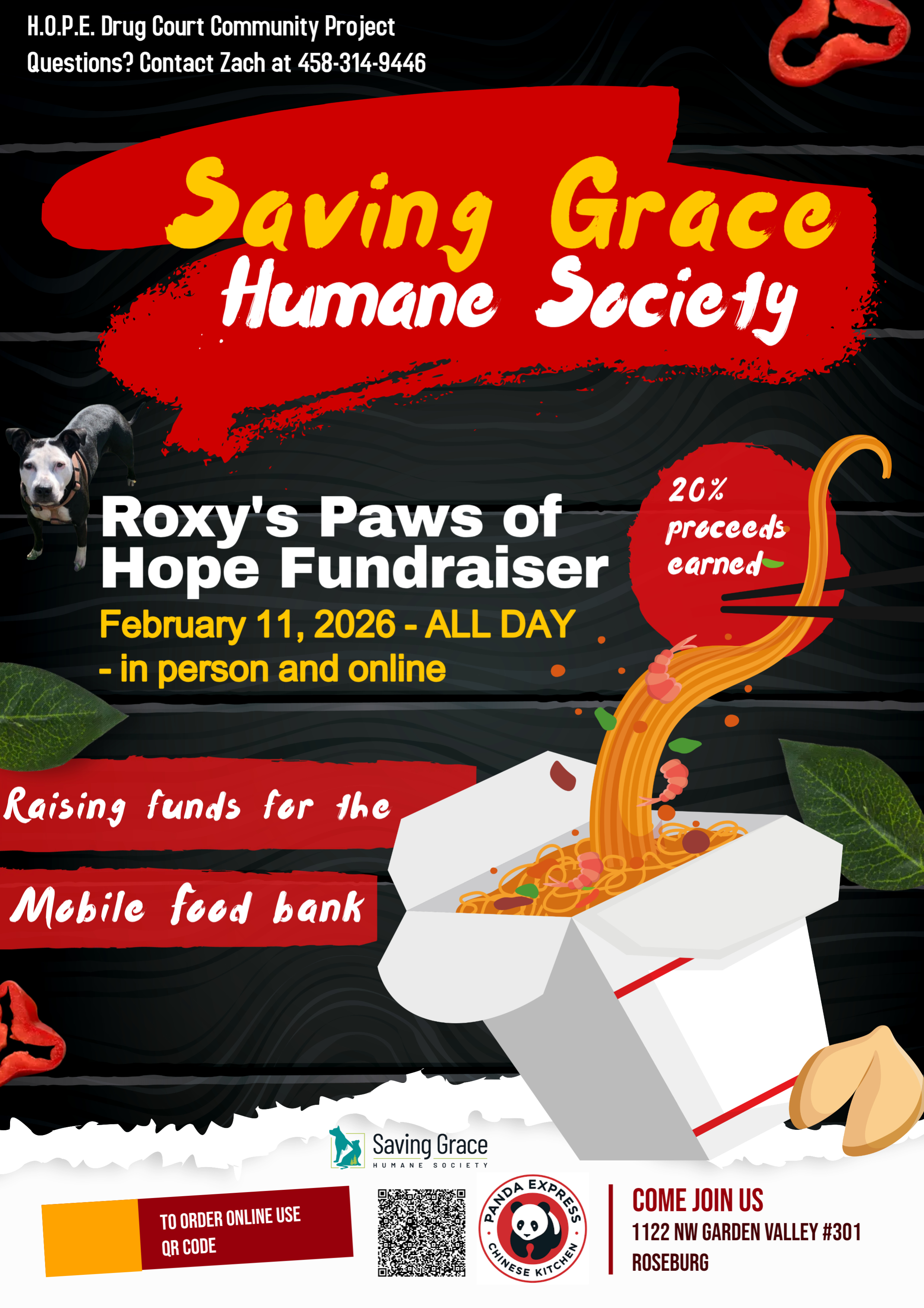 Community members are encouraged to support Roxy’s Paws of Hope by donating pet food, participating in the Panda Express fundraiser, or contributing online through Saving Grace Humane Society.
