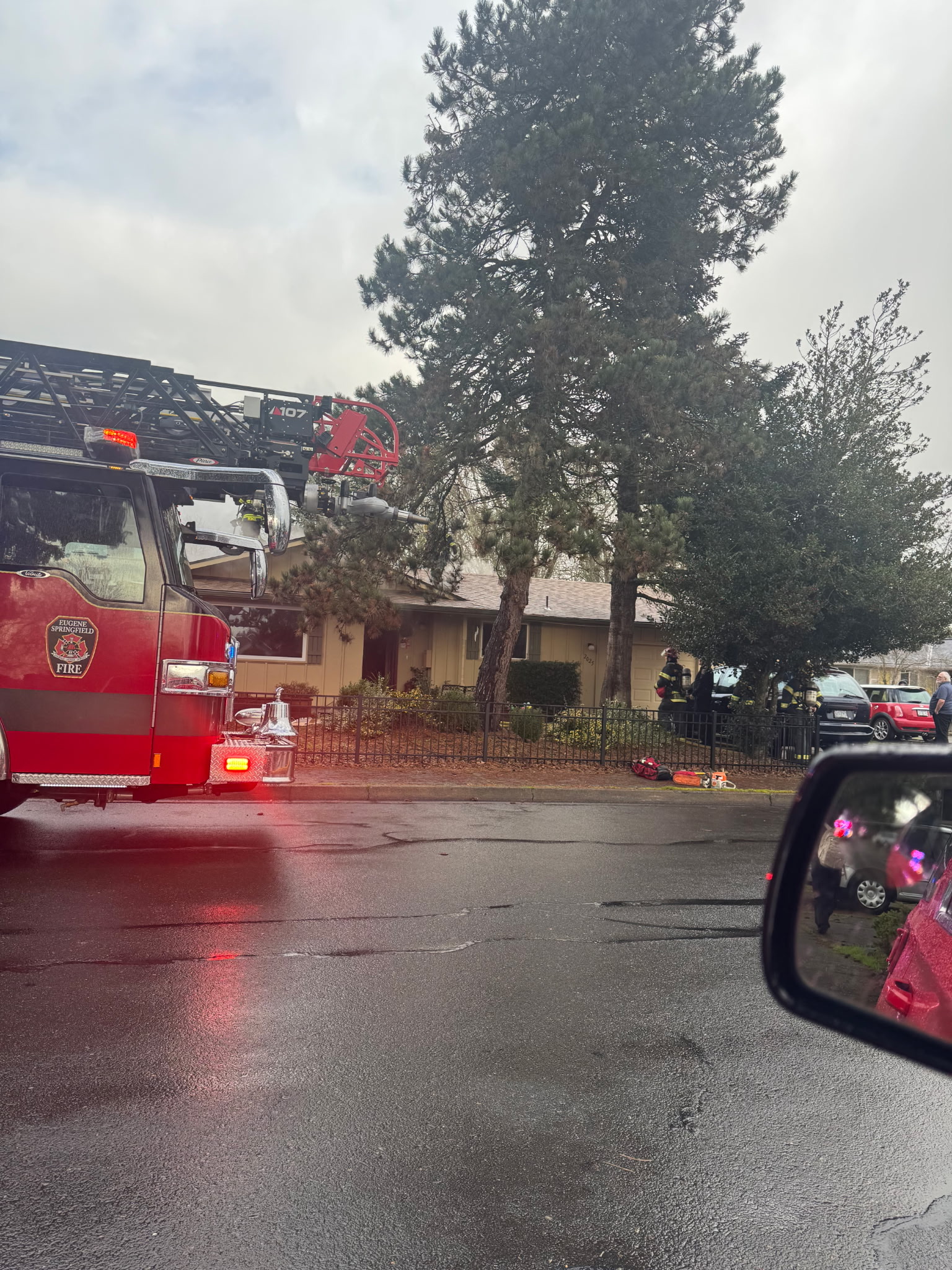 Eugene, OR. Shortly after 2:30 PM on January 7th, Eugene Springfield Fire responded to a reported house fire in the Cal Young neighborhood. A passing motorist noticed the fire in the 2000 block of Brewer Ave. Engine 9 from Valley River was in the area responding to a non-urgent call for service. The crew transitioned to the fire and arrived shortly after the call was dispatched. E9 found a working fire on the side of the house exterior with smoke coming from the attic. E9 quickly knocked down exterior fire and moved interior for fire attack and primary search. Ladder 11 arrived shortly after and assisted E9 with interior fire attack. The fire had extended into the living room, and crews quickly knocked down the active fire in the house, pulled the ceiling in the living room, and checked for fire in the attic. Truck 1 was sent to the roof to open ventilation holes and check for extension from the top.