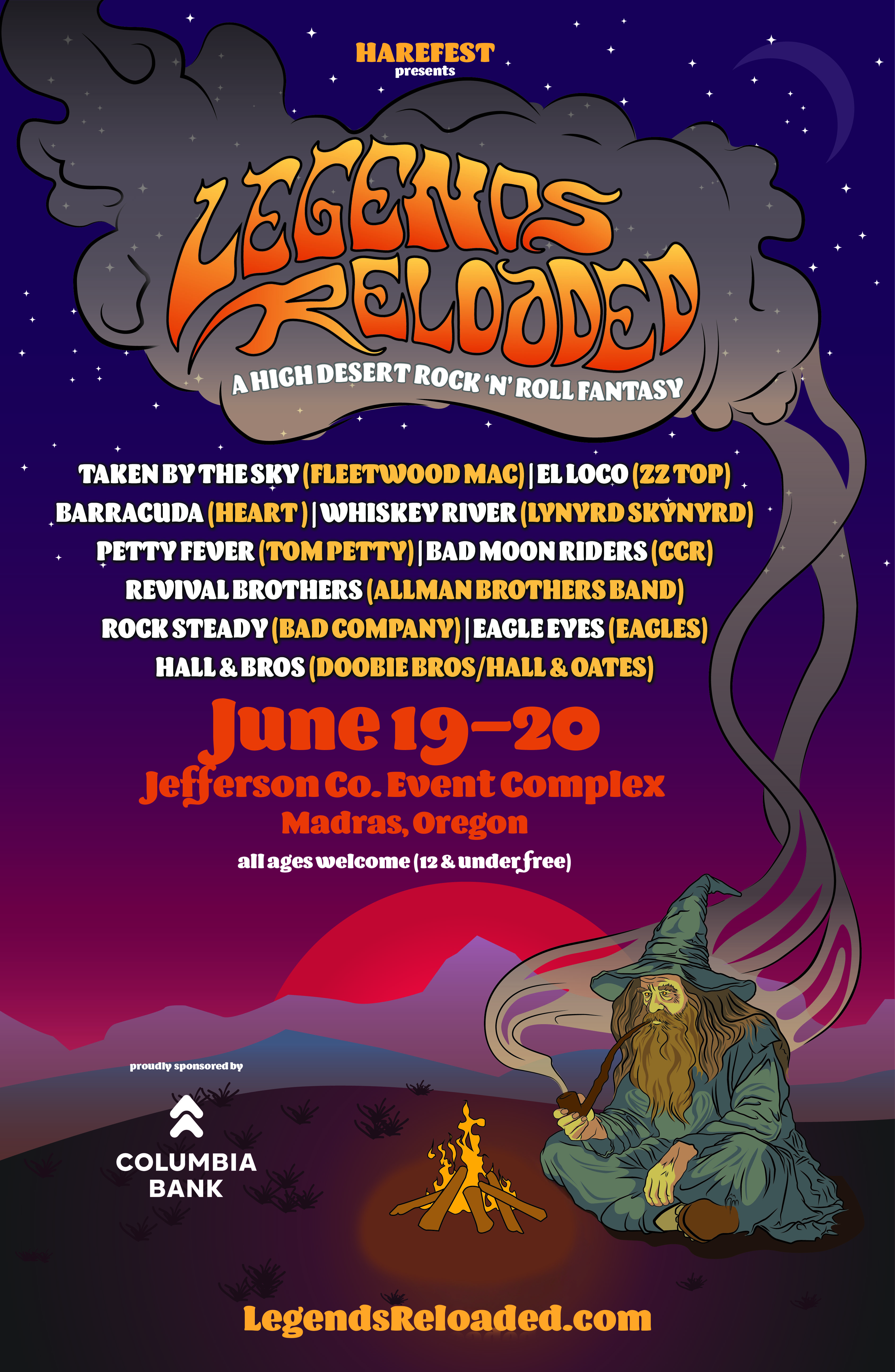 Madras, OR — January 26, 2026 — Harefest LLC, the Pacific Northwest festival producer behind Harefest, Capital City Retro Fest, 90’s Flannel Fest, and Seattle Retro Fest, is proud to announce Legends Reloaded, a two-day classic rock tribute festival taking place June 19–20, 2026 at the Jefferson County Event Complex in Madras, Oregon.