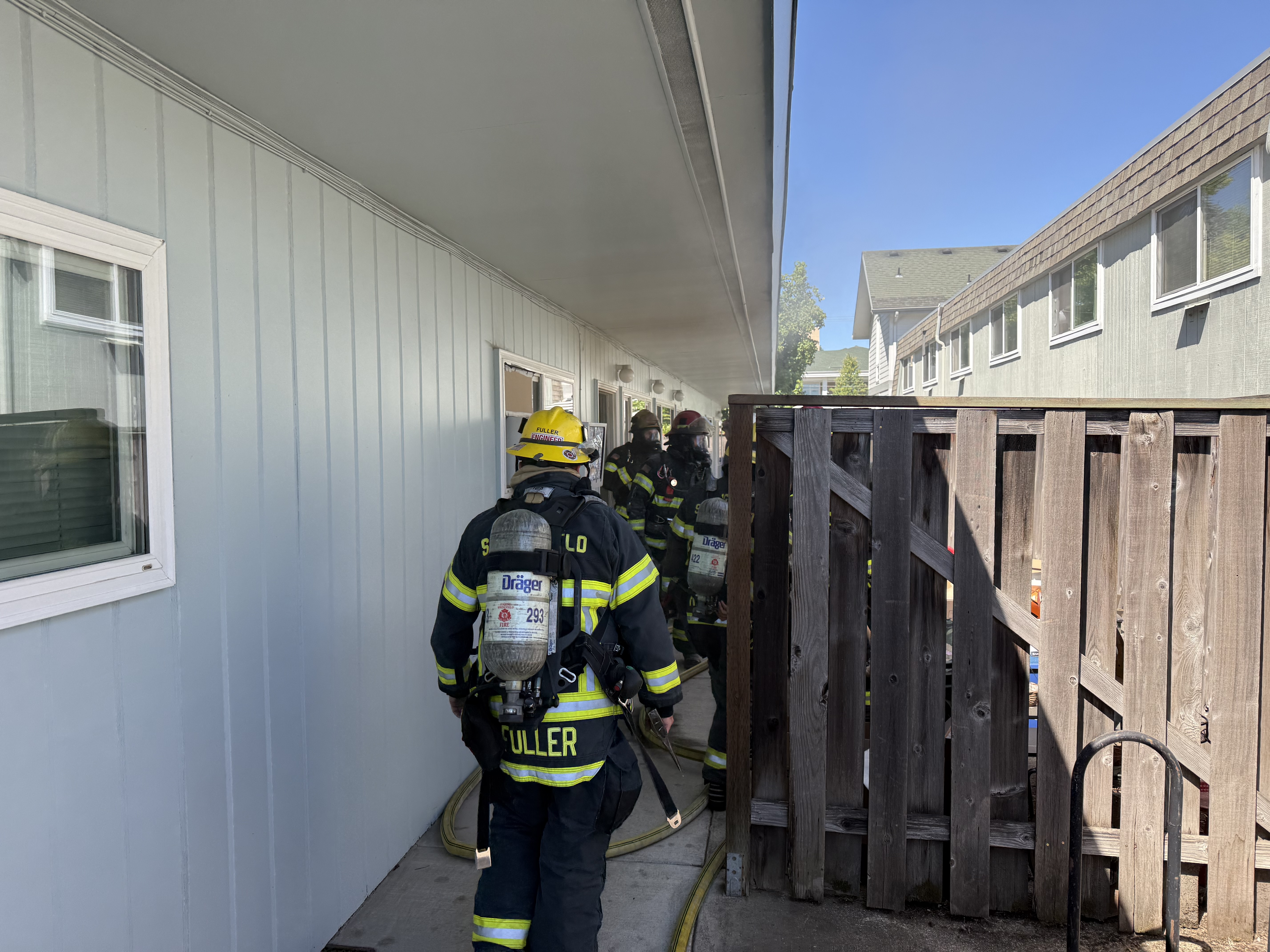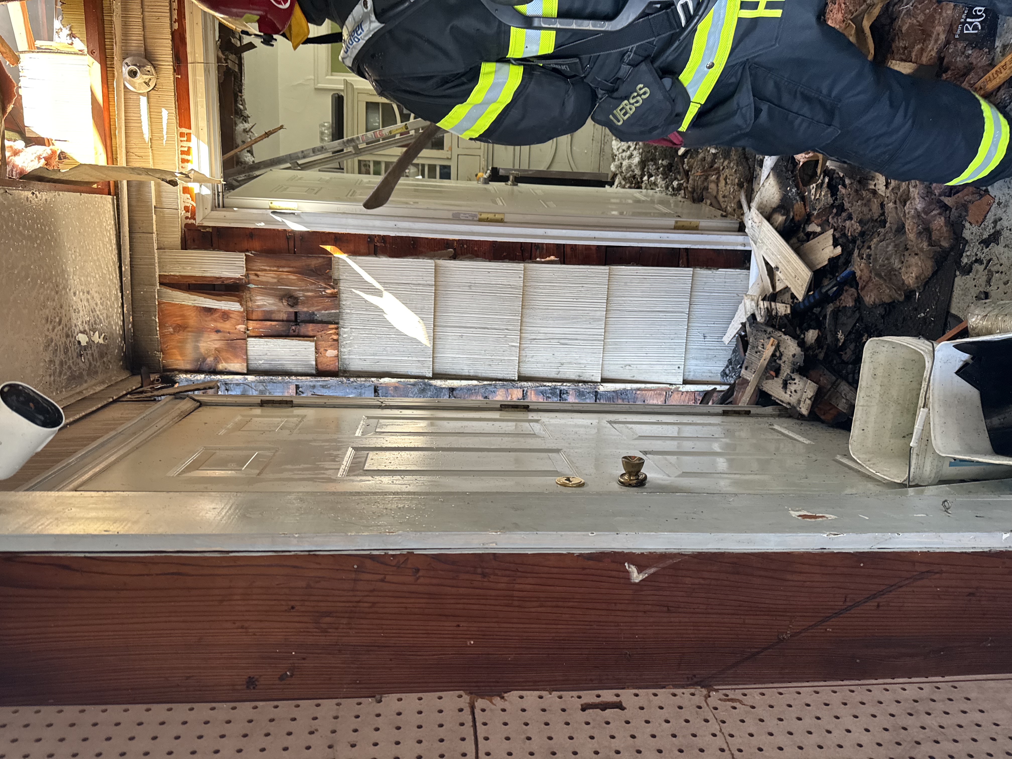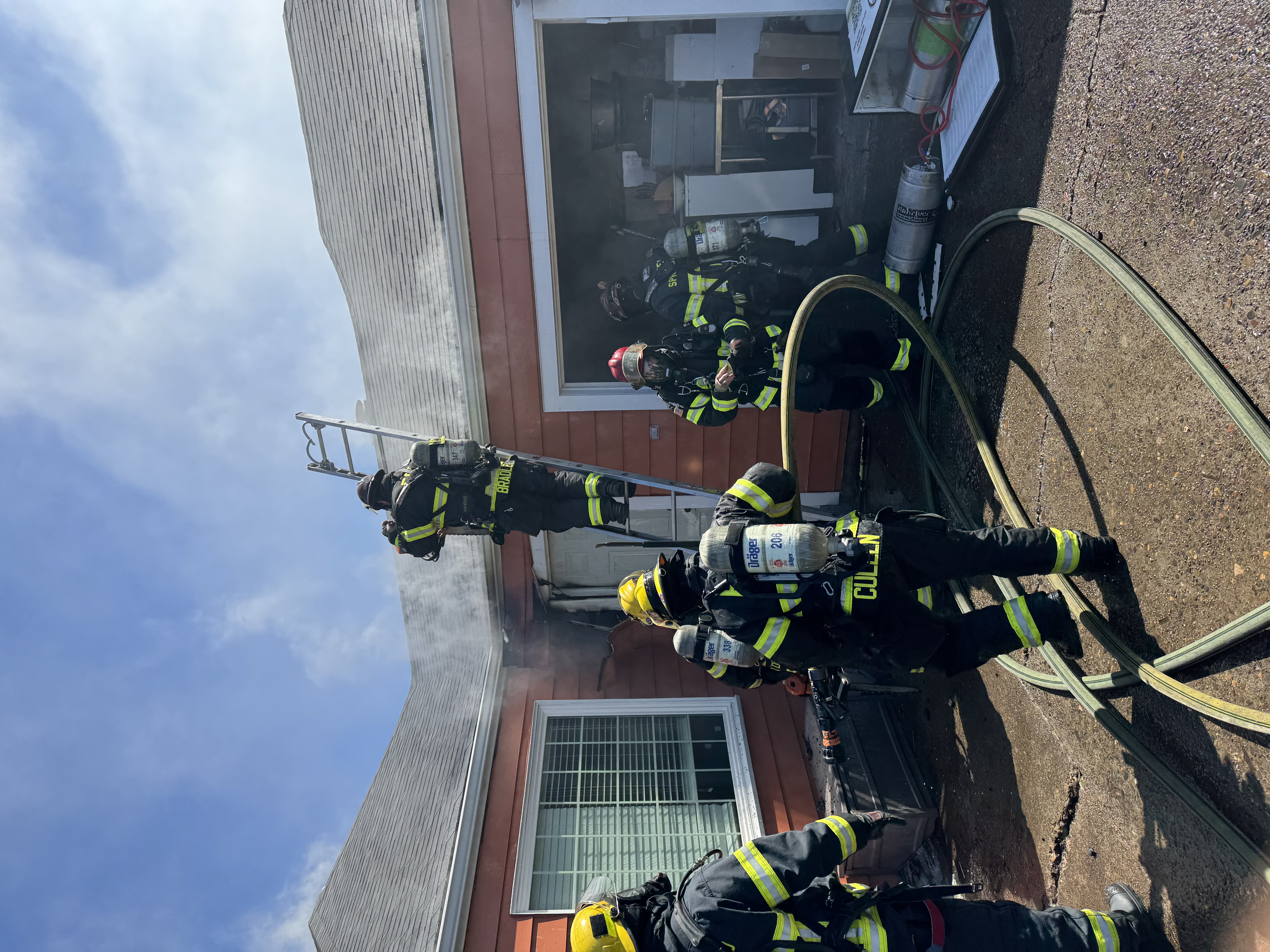 Engine 5 from the Gateway station arrived at 0359 and reported a working fire in the garage. The crew deployed a hose line for fire attack and search operations in the garage assisted by Engine 4.