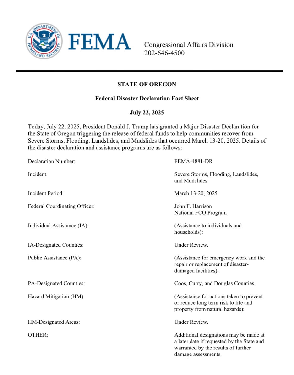 Media Contact: Tamara Howell | Douglas County Emergency Communications & Community Engagement Specialist | Public Information Officer | Phone: (541) 957-4896 | Cell: (541) 670-2804 | Email: tamara.howell@douglascountyor.gov