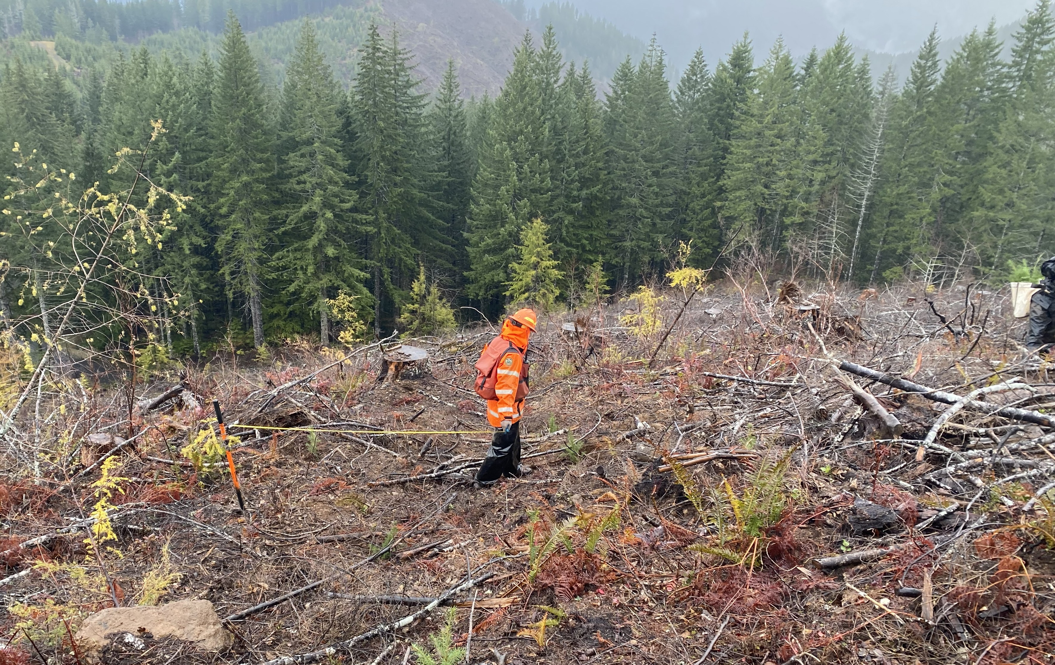 To determine if the work is done correctly ODF staff measures out a 1/100th of an acre circle and counts the number of seedlings planted in the circle.