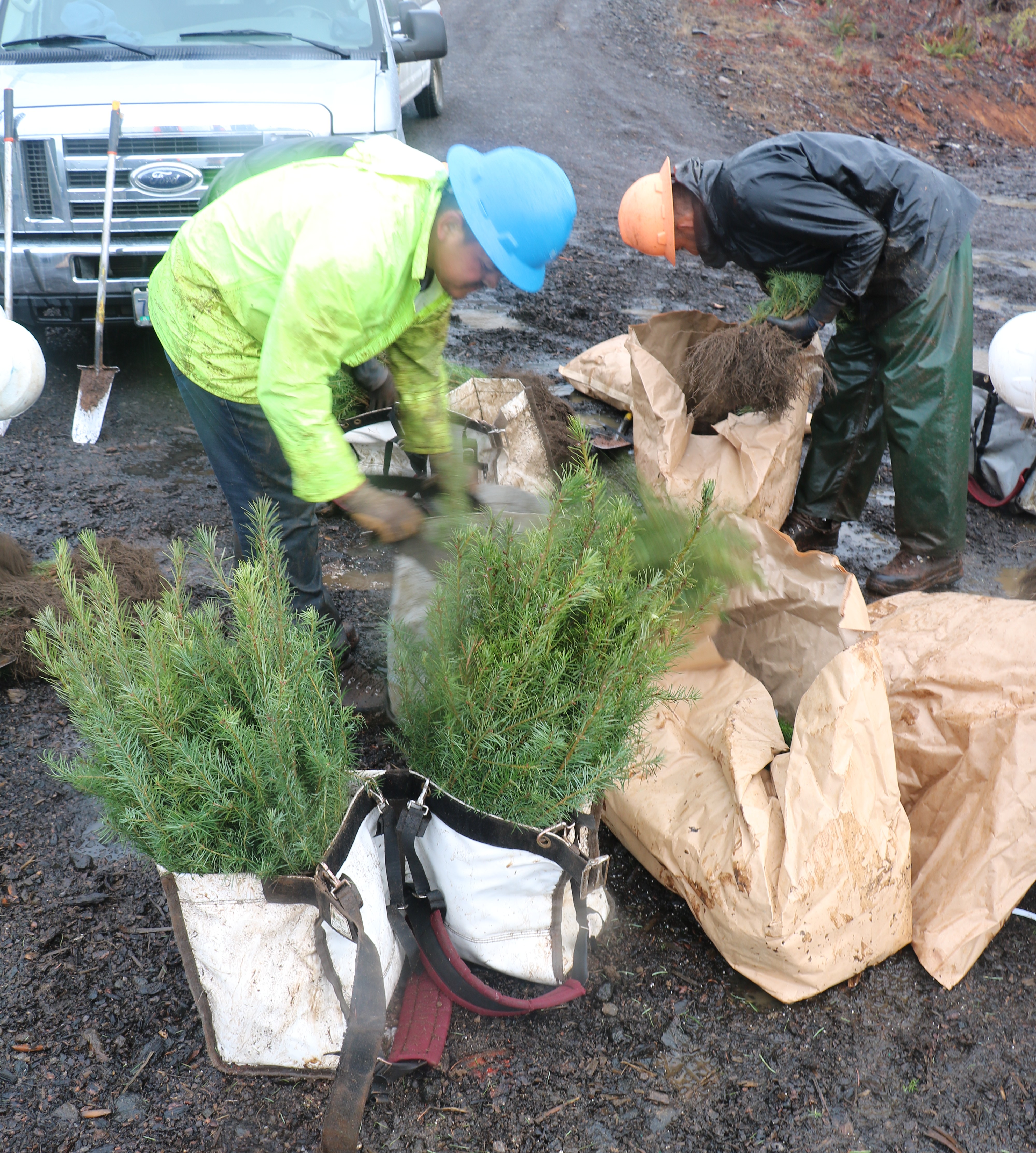 The planting is done mostly by private contractors working for ODF. Some planting and replanting the next year, mainly in the Tillamook State Forest, is also done by Adults In Custody from the South Fork Forest Camp, a facility jointly run by the Department of Corrections and ODF.
