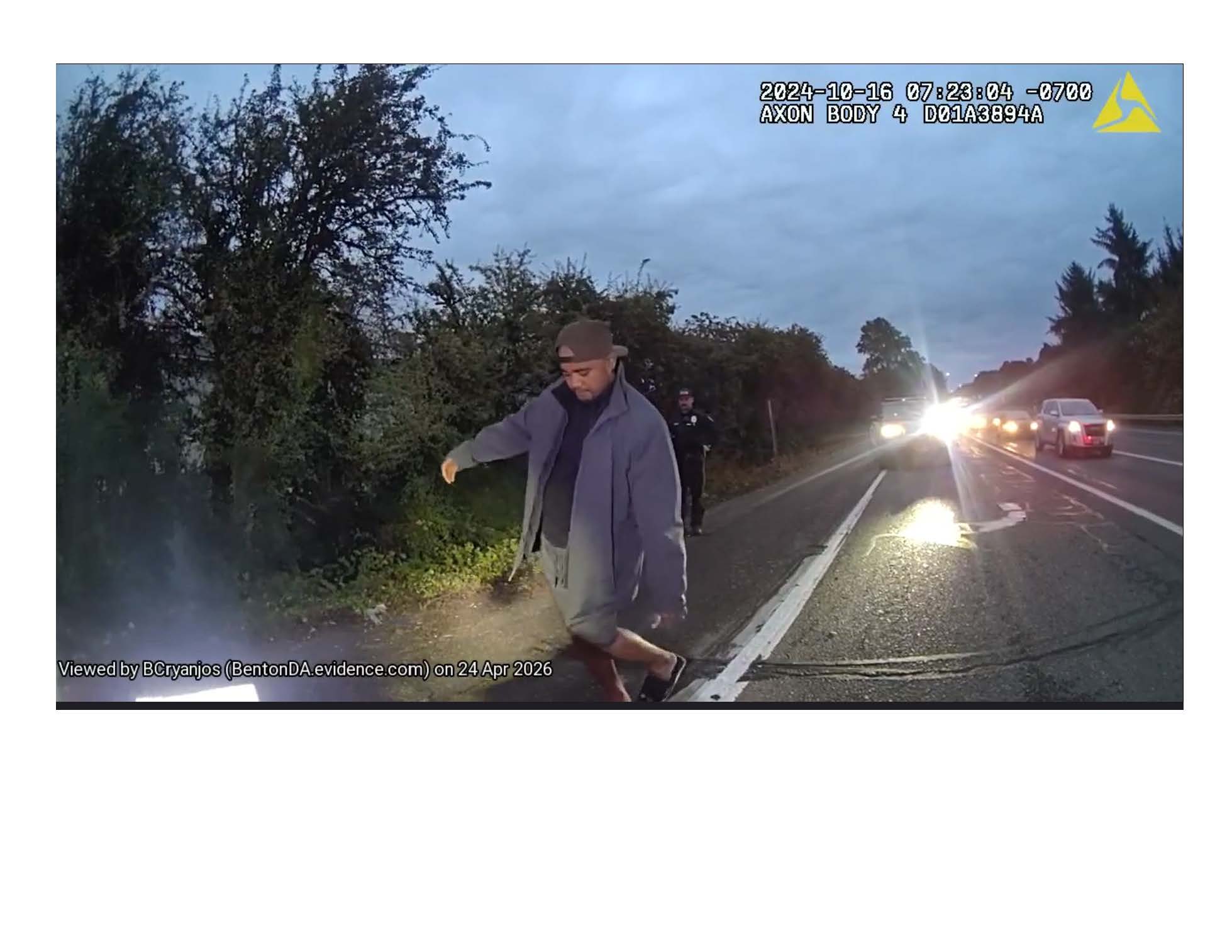 “When a person takes to the streets under the influence, they are surrounded by countless potential victims. Take a look at the video showing dozens of vehicles passing Mr. Michael while he is failing his field sobriety tests. But for the efforts of Officer Larson, one of those drivers may not have made it home to their loved ones. Do not use intoxicants and drive. It is not worth the risk.” Ryan Joslin, Benton County District Attorney.