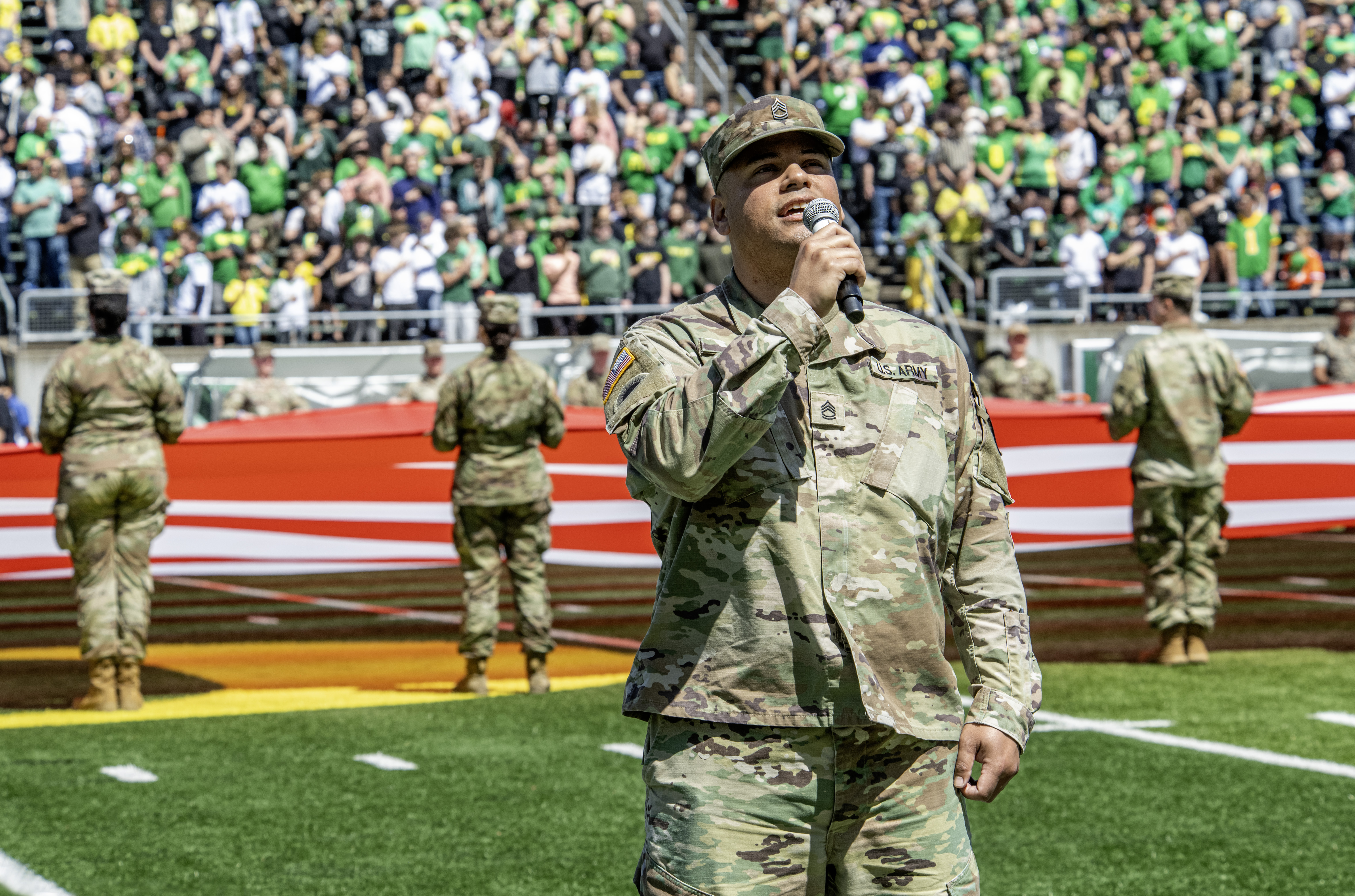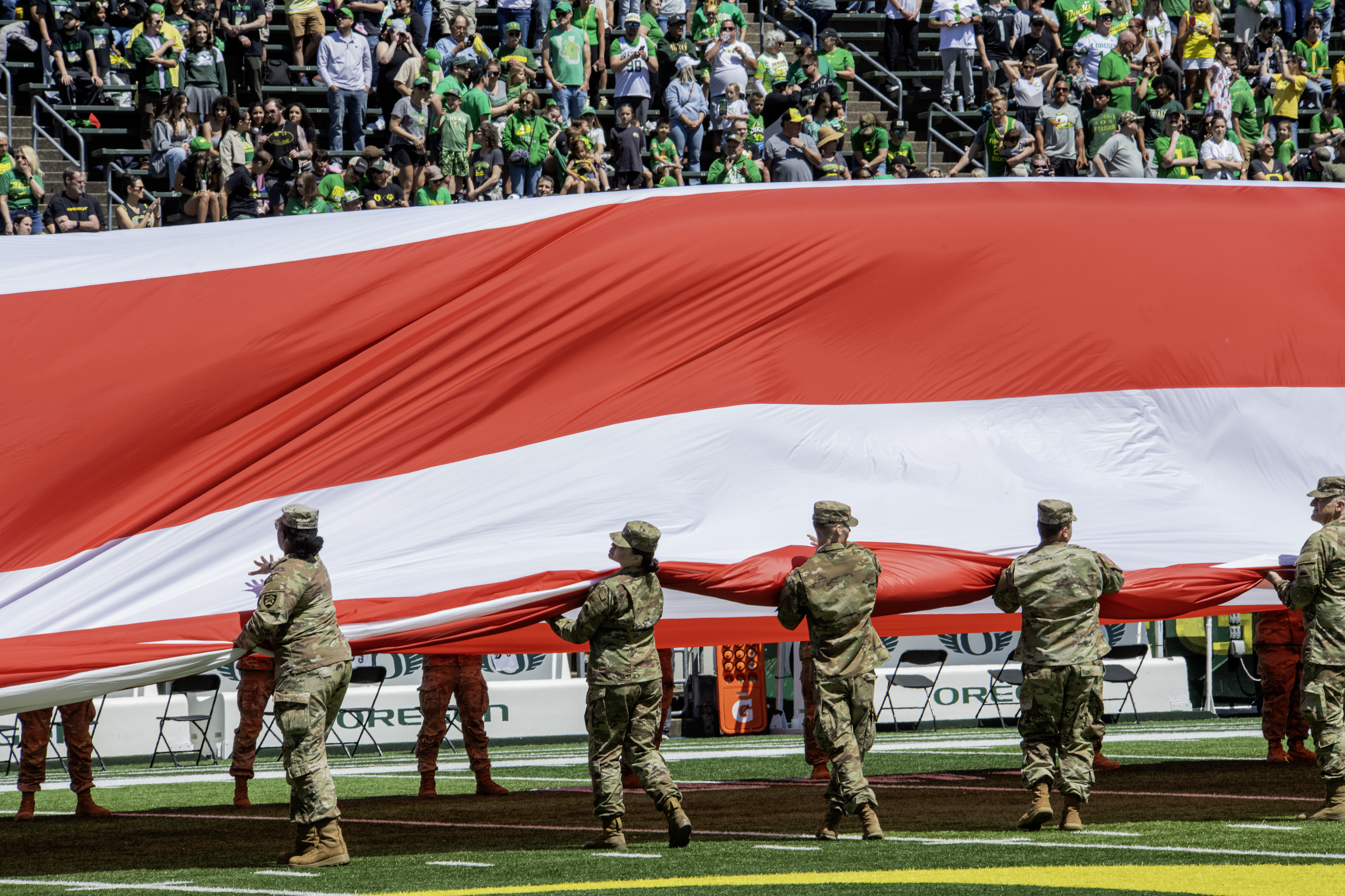 260418-Z-CH590-1104: An Oregon Army National Guard Color Guard presents the nation's colors during the playing of the National Anthem to open the 2026 Hall of Honors ceremony at Camp Withycombe in Happy Valley, Oregon, on April 18, 2026. (Oregon National Guard photo by John Hughel)